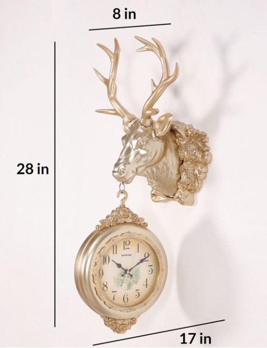 Add a touch of rustic charm and functionality to your space with this elegant Deer Double Side Clock, measuring 28 inches. Featuring a beautifully designed deer motif, this clock blends nature-inspired artistry with vintage appeal. The double-sided display ensures time is visible from multiple angles, making it ideal for hallways, living rooms, cafes, or entryways. Crafted from sturdy materials with fine detailing, this piece serves as both a statement décor item and a practical timekeeper.